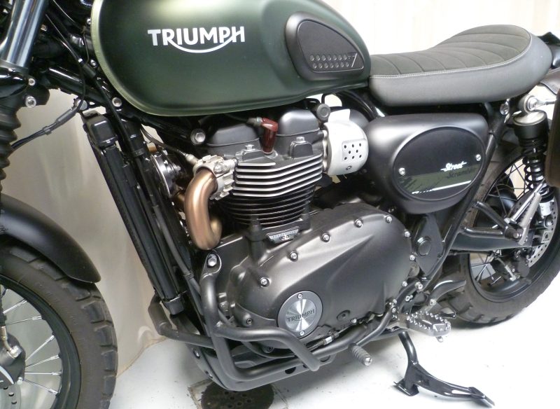 Extra: Midden standaard, originele Triumph zijtas, bagagerekje, valbeugels, brede voetsteunen,